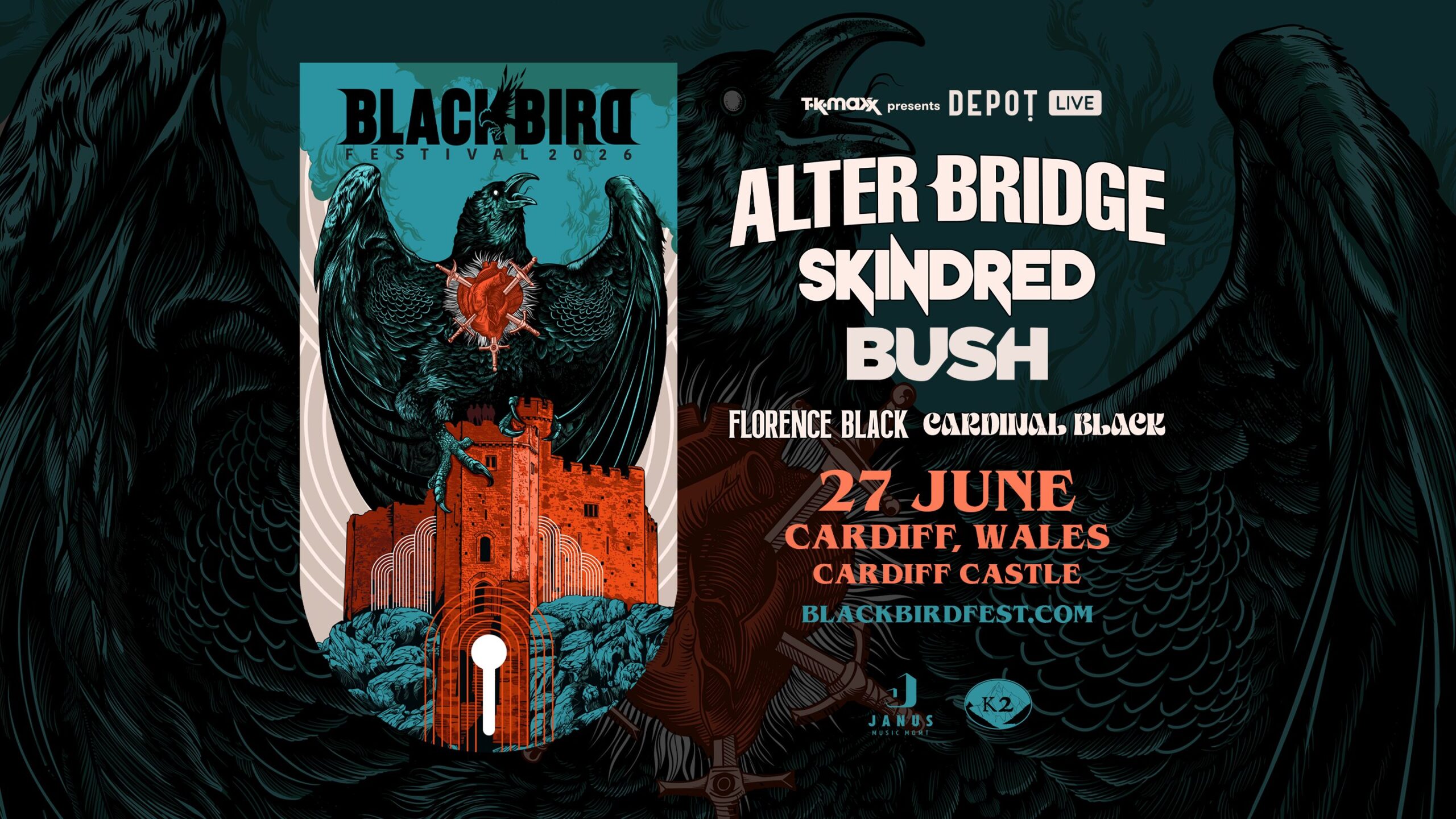 On Saturday 27th June 2026, ALTER BRIDGE bring their inaugural BLACKBIRD FESTIVAL to Cardiff Castle, headlining a huge day of live rock in one of the city’s most iconic locations.